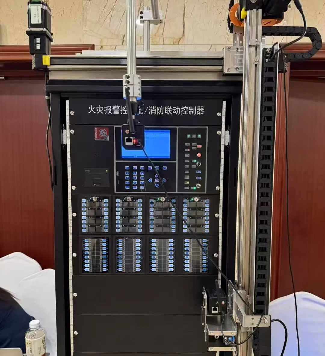 6月20日,山东消防协会会议上,消防控制室值班机器人引发关注。该设备采用工业机器人三轴定位技术,仿真人手操作火灾报警控制器,打破火灾自动报警控制器的接口协议“壁垒”,可实现对火灾报警控制器的主键盘、总线盘、多线盘以及电话、广播等进行全量控制。